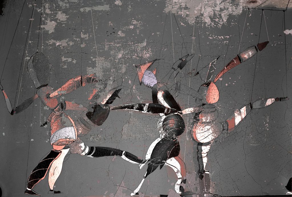 “ MARIONETTENPARADE“   Bleistiftzeichnung – coloriert / 2017